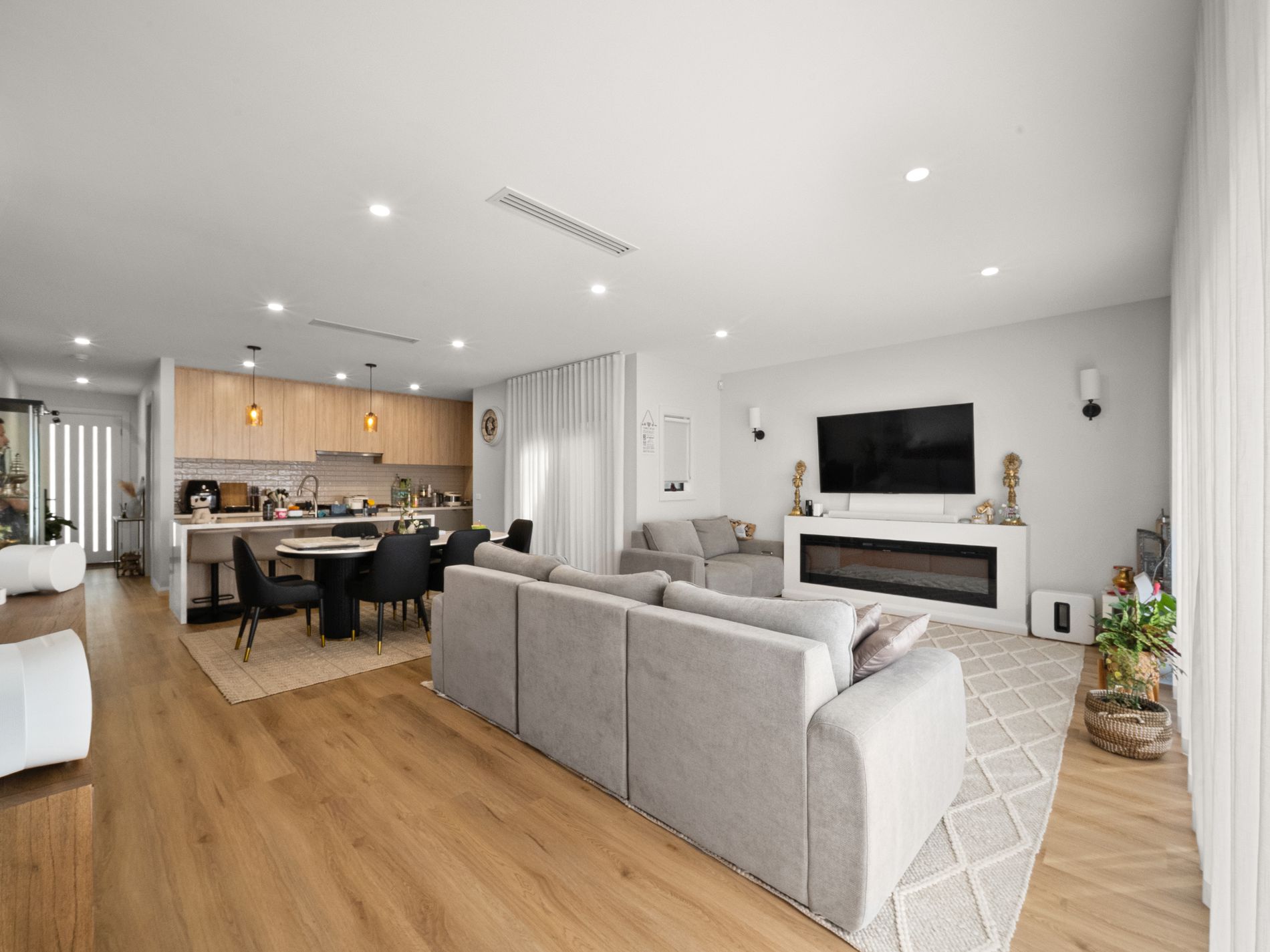 The open-plan living and dining area is filled with natural light and seamlessly connects to a modern kitchen equipped with quality appliances and ample storage. Designed for year-round comfort, the property includes both heating and cooling to keep you comfortable in every season.